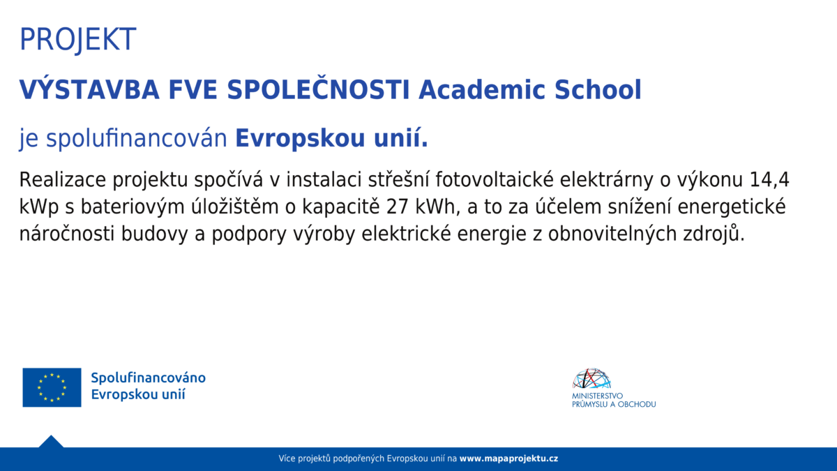 Výstavba FVE SPOLEČNOSTI Academic School je spolufinancován Evropskou unií.